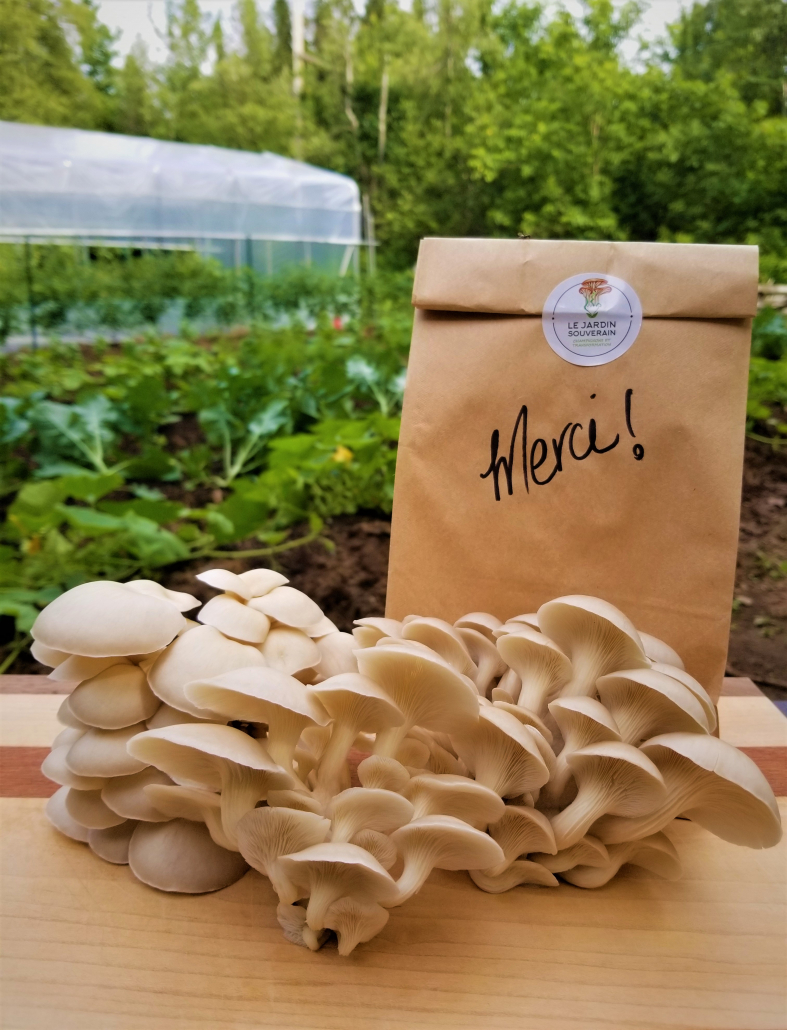 Les champignons du Jardin Souverain sont disponibles sur la plateforme Du Terroir à l’Armoire, au Potager des trois oies à Issoudun de même qu’à leur kiosque au Marché public de Lotbinière les samedis, ainsi que directement au Jardin Souverain, en prenant rendez-vous.