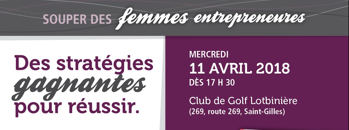Club de Golf Lotbinière 269, route 269, Saint-GillesSouper des femmes entrepreneures de Lotbinière Conférence de Mme Hélène-Lee Gosselin C’est en s’appuyant sur plusieurs recherches menées auprès des femmes entrepreneures qu’Hélène-Lee Gosselin a découvert des stratégies propres à la réussite de ces dirigeantes d’entreprises. C’est avec dynamisme qu’elle partagera ses découvertes en lien avec la passion, l’authenticité, les valeurs, la confiance, les enjeux […]
