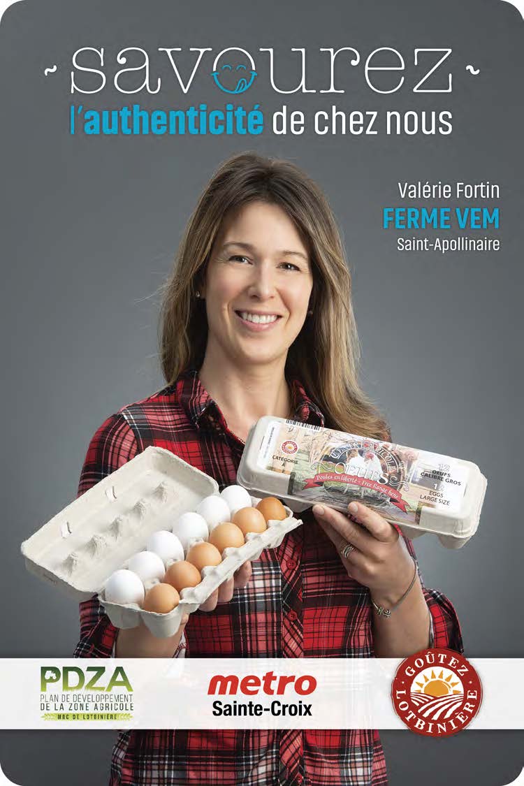 Au total, six producteurs agroalimentaires de Lotbinière sont mis en vedette sur les étagères du Métro de Sainte-Croix. « Lorsqu’on parle d’achat local, je pense que tout le monde doit faire sa part, les municipalités, les entreprises, les citoyens, bref tous doivent contribuer et je suis fière de participer à ce mouvement » mentionne Mylene Dubuc responsable du Métro de Sainte-Croix.