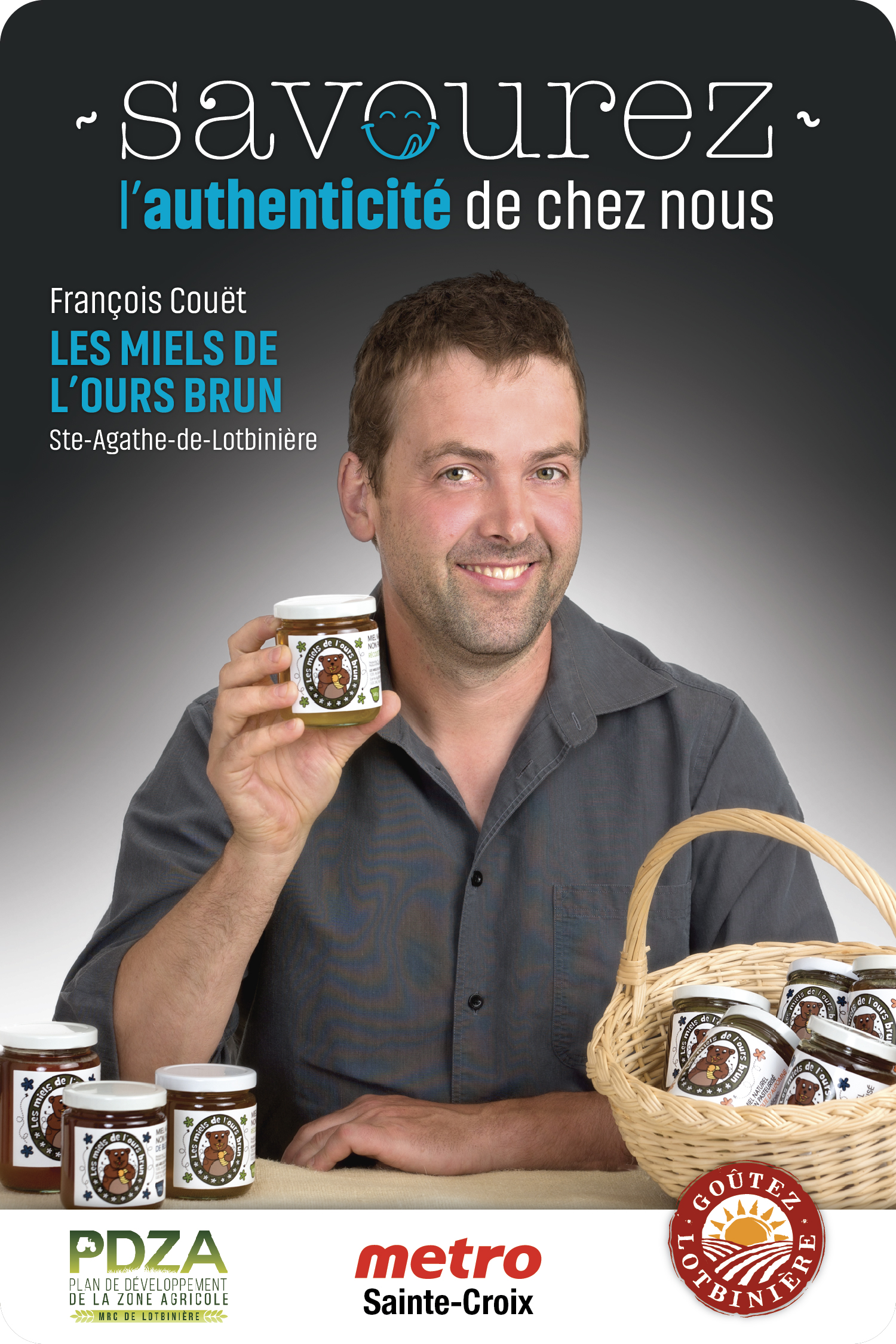 C’est afin d’aider ses clients à identifier les produits de Lotbinière que le Métro de Sainte-Croix a collaboré avec la SADC de Lotbinière et la Table Goûtez Lotbinière à un projet de conception d’affiches apposées sur les étagères mettant en valeur des producteurs d’ici.
