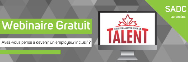 Vous pourriez élargir vos sources de recrutement et découvrir les avantages liés à l’ajout de ces nouveaux talents dans votre entreprise. La SADC de Lotbinière, en partenariat avec la CBDC Restigouche, dans le cadre du programme Optez pour le talent / Hire for Talent, est à la recherche d’employeurs souhaitant approfondir leur compréhension sur l’embauche inclusive.