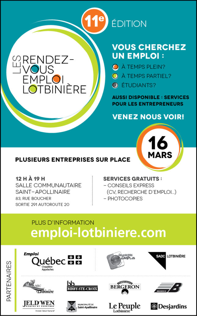 Le Rendez-vous Emploi Lotbinière (16 mars 2017): 300$