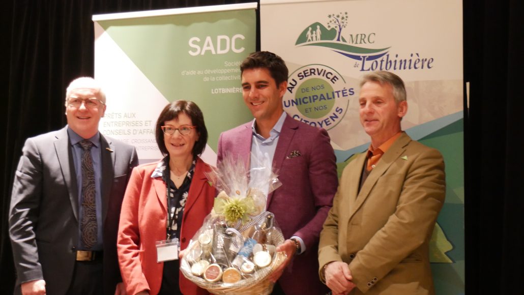 Laurier-Station, le 26 janvier 2018 – Invité comme conférencier, le co-PDG et cofondateur de l’entreprise « Surmesur », monsieur Vincent Thériault, a fait le récit de son aventure entrepreneuriale lors d’un déjeuner-conférence organisé par la Société d’aide au développement de la collectivité (SADC) de Lotbinière, le vendredi 26 janvier au Complexe des Seigneuries. L’activité, offerte avec la participation de la MRC de Lotbinière, a mobilisé une cinquantaine d’entrepreneurs et gens d’affaires de la région.